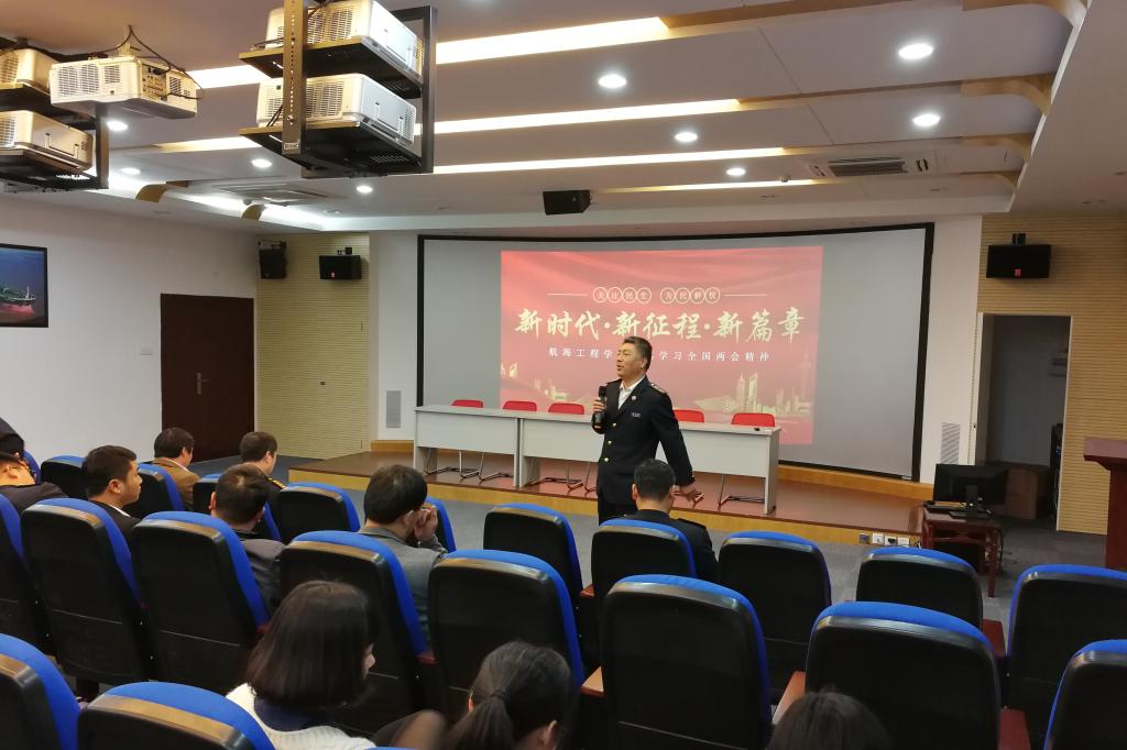 自3月26日以来,航海工程学院先后开展了学院中心组学习、第十六期学生业余党校、观影《厉害了,我的国》、师生半月谈等活动,并把4月作为学院的“两会”精神学习月,将学习同贯彻落实习近平新时代中国特色社会主义思想和党的十九大精神结合起来,同贯彻落实习近平总书记“四个着力”重要指示精神结合起来,同推进学校“两个高质量”建设结合起来。要求全体党员干部身体力行、率先垂范,带头学、带头讲、带头干;把学习贯彻全国两会精神纳入各基层党组织的工作计划,推进全国两会精神进课堂,做到入心入脑。要求学院工会和团委等群团组织要发挥自身优势,开展各具特色的学习教育活动。