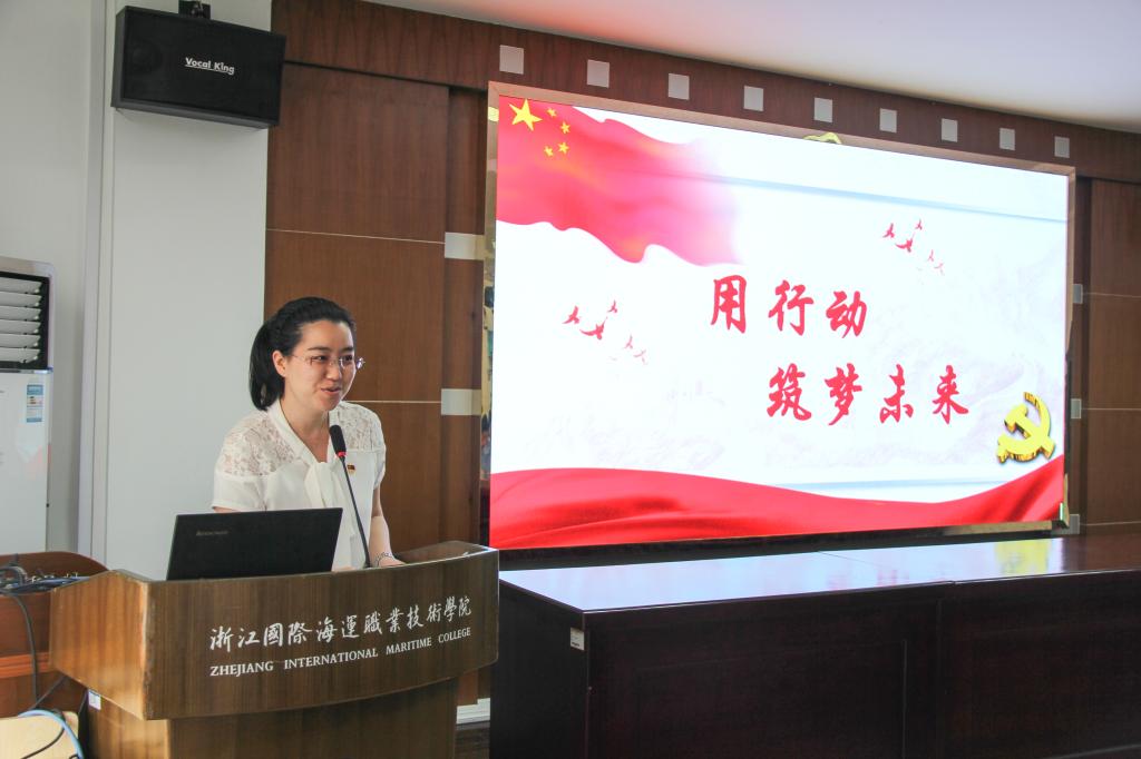 机关党总支第一党支部书记金洁在《用行动筑梦未来》党课中,以人民日报微视频《奋斗》为引子,引导大家跟随习近平的同期声,重温奋斗的艰辛,体会奋斗的幸福。随后,她以方志敏、黄大发、袁隆平、廖俊波、支月英等优秀党员事迹为例,从“坚定理想信念、大干实干勇于创新、关爱师生乐于奉献、尽心尽责敢于担当”四个角度出发,阐述党员如何用行动筑梦未来。