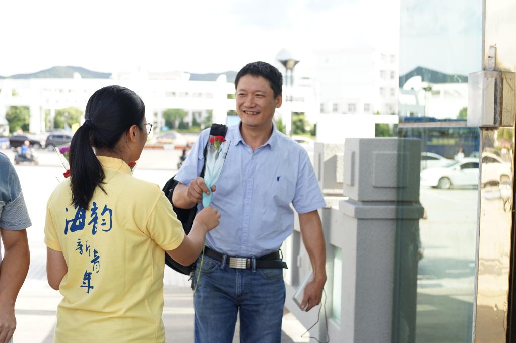 9月10日上午,校团学干部们手捧鲜花,早早等候于南、北校门口。一枝淡雅的康乃馨、一个灿烂的微笑、一声真挚的问候,都代表着同学们对老师的情意。老师们感受到学生的热情与心意,纷纷以欣慰的笑容作为回应。