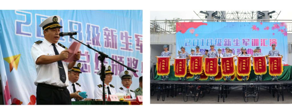 汇演期间,突降大雨,全体校领导和各方阵坦然接受大雨的洗礼与考验。在场新生秩序井然,丝毫不受影响,充分展现了参训新生良好的组织纪律意识和不怕苦不怕累的作风,达到了此次军训的目的。军训期间,学校还组织了“唱响军歌 情聚海运”——2018级新生军歌大赛暨迎新生联欢晚会,对大学新生进行爱国主义、集体主义和民族精神的生动教育;举办了“中美贸易摩擦辨析”专题讲座,加深了大学生对中美贸易摩擦的了解和认识,进一步增强了大学生热爱祖国、关心国家大事、了解世界动态格局的爱国情怀。