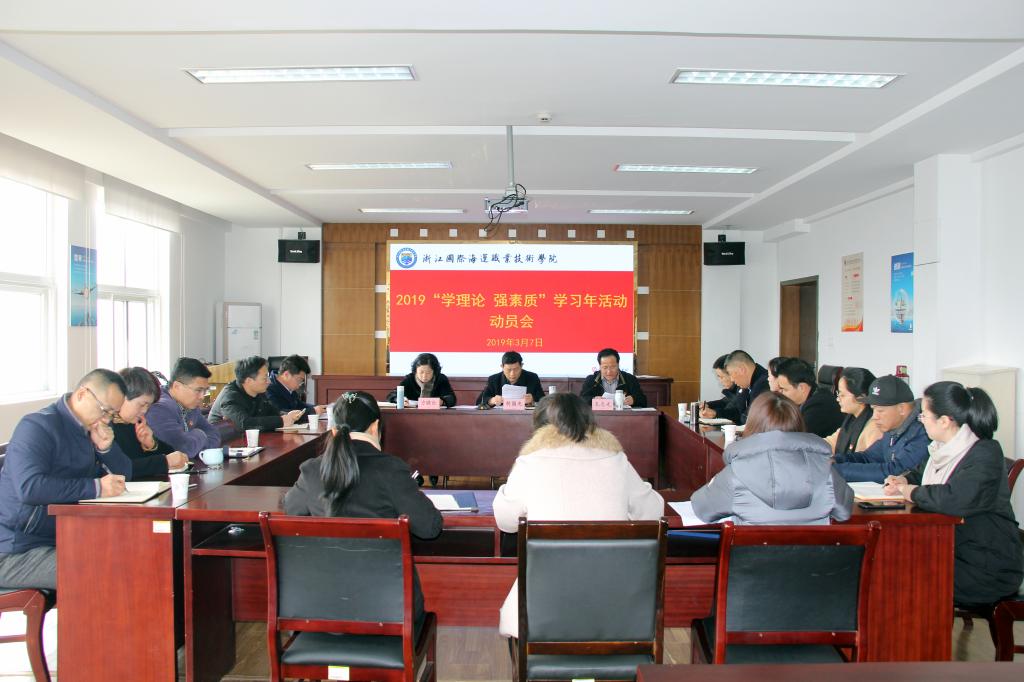 为认真贯彻落实习近平总书记关于“加快推进马克思主义学习型政党、学习大国建设”的重要指示精神,营造“更加崇尚学习、积极改造学习、持续深化学习”的良好氛围,推进理论武装工作深入开展,学校党委经研究决定将2019年确定为我校“学理论 强素质”学习年。3月7日下午,学校在行政楼401会议室召开2019“学理论 强素质”学习年活动动员会,校党委副书记胡国光,校党委委员、副校长孔志光,校党委委员、组织部部长、人事处处长、宣传(统战)部部长方晓红及相关部门负责人、各党总支(直属支部)书记参加会议。