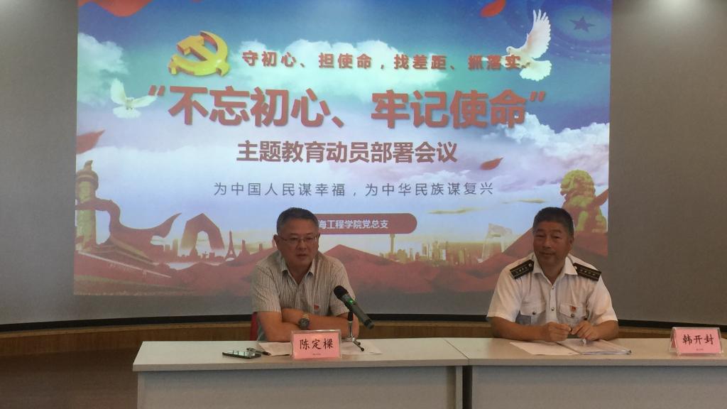航海工程学院党总支在国际海员培训楼西侧报告厅召开“不忘初心、牢记使命”主题教育动员部署会议
