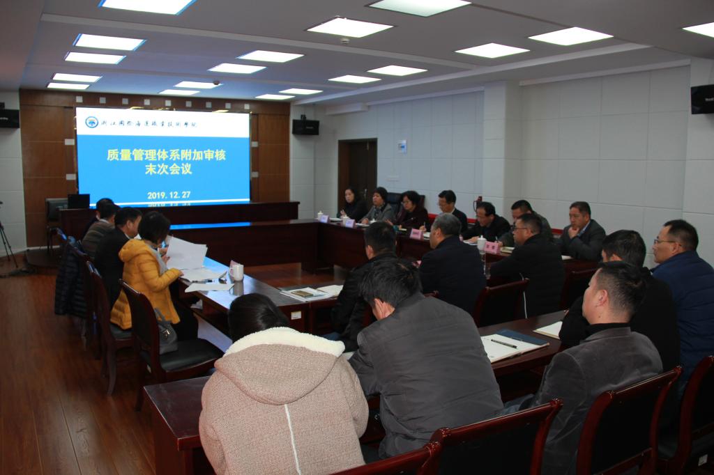 海事局质量管理体系审核组任德夫、吴宏丽等专家,我校副校长孔志光、工会主席刘相、纪委书记江爱芬、副校长曹志斌等校领导以及学校各受控部门负责人出席了审核会议。(文/吴旭光 图/赵怡琦)