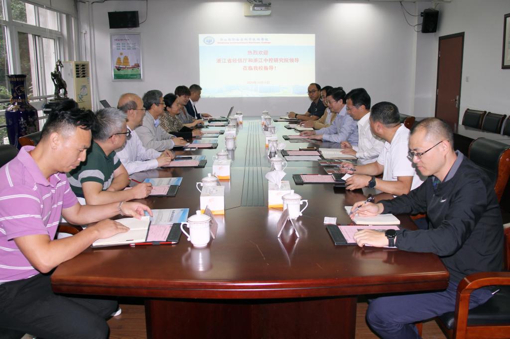 10月15日,浙江省经济和信息化厅祝健副处长、浙江中控研究院有限公司张伟宁董事长一行7人来校开展合作洽谈。学校党委书记苏为泽、校长吴中平和相关部门负责人陪同。