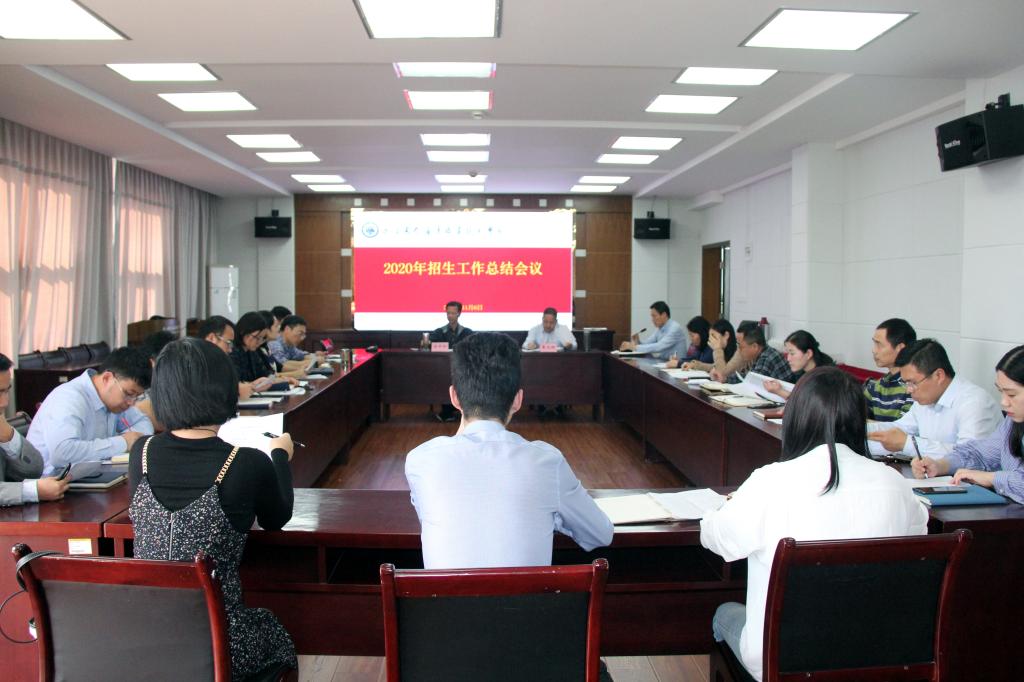 曹志斌副校长在讲话中说,在新高考改革和新冠疫情的双重挑战下,我校提前谋划,创新工作方式,在各二级学院、各部门和全体师生共同努力下,2020年招生工作顺利完成。他总结了学校2020年招生工作取得的成绩,同时指出了存在的问题,并对下一步的招生工作提出了意见、建议。