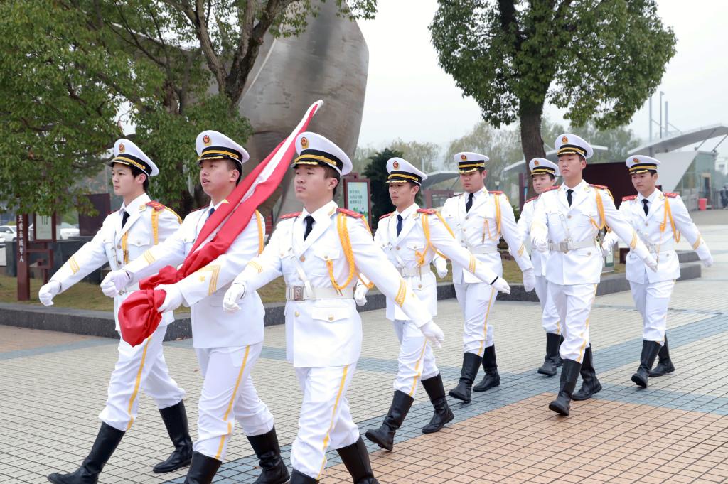 航海工程学院国旗护卫队举行升旗和降半旗仪式