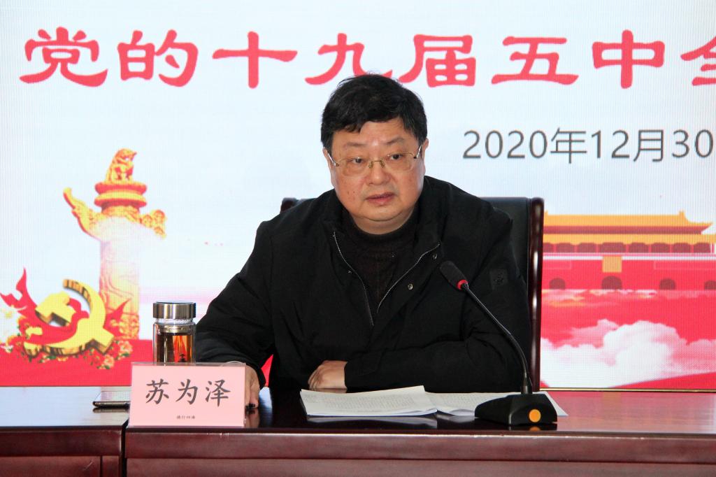 12月30日上午,党委书记苏为泽作了学习贯彻党的十九届五中全会精神专题辅导。苏书记指出,学习贯彻党的十九届五中全会精神,是全省教育系统当前和今后一个时期的重要政治任务。全校上下要掀起全会精神的宣贯热潮,重点抓好党员干部的学习,把全会精神作为中心组学习的重要内容,组织开展专题研讨,确保系统学习、深入思考;要帮助党员深刻领会、准确理解全会提出的新观点、新论断、新要求。他强调,要着力学懂弄通全会的精神实质、核心要义,深刻理解党中央制定“十四五”规划和2035远景目标的战略考量,深刻领会全会提出的一系列新的重要思想、重要论断、重要举措,深刻把握加快构建新发展格局的战略构想,真正把思想统一到全会精神上来,把力量和智慧凝聚到实现全会确定各项目标任务上来,为争创社会主义现代化先行省和展示“重要窗口”海岛风景线贡献力量,为早日建成海洋特色鲜明的高水平职业院校而不懈努力。他要求,全校各级党组织和党员干部要切实提高政治站位,充分认识党的十九届五中全会的重大意义;要努力学深悟透,指导推进学校各项工作;要营造浓厚氛围,切实抓好学习贯彻工作。