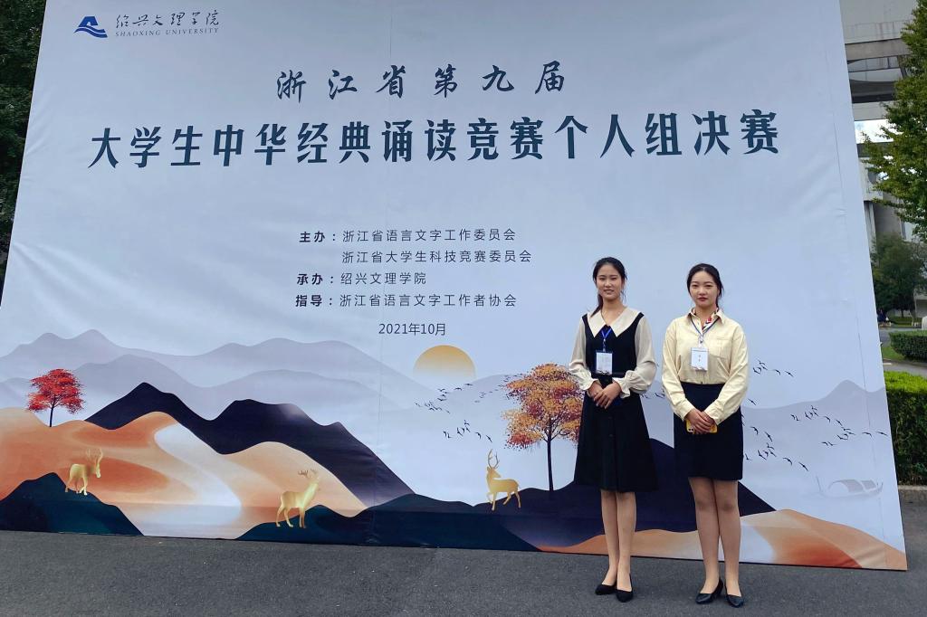 雅言传承文明,经典润育人生。近日,由浙江省教育厅、浙江省大学生科技竞赛委员会主办的“浙江省第九届大学生中华经典诵读竞赛”决赛在绍兴文理学院圆满结束。本次大赛分本科组和专科组两个组别,其中共有来自48所专科学校的353名参赛选手同台竞技。我校海洋旅游学院2020级国际邮轮乘务1班的方一庆、雷蕾两位同学表现出色,喜获一等奖。
