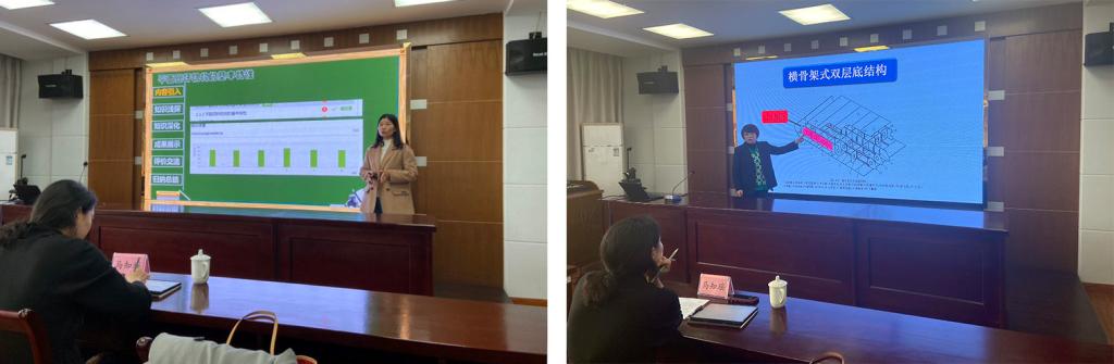 在展示交流环节中,参训教师分为三组,结合上周线上微格演练的汇报情况,分别在自己教授课程连续八课时的教学设计中选取了某个局部的教学片段,或新知讲解或示范演示或作业点评或课堂总结,逐个进行了8分钟左右的课堂无生教学展示交流,充分展示了本次“护航”成长研修班的培训成果。教学展示汇报结束后,校外专家组分别从课件制作交互、信息化教学、无生展示重难点、课程思政融入等方面对教师们的教学展示进行了细致入微的点评指导。