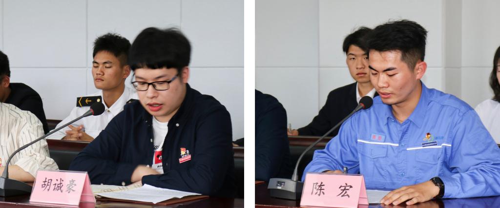 市优秀团干部、石油化工学院团委负责人孙丹晔,马克思主义学院青年教师胡诚豪,全国优秀共青团员、第三届定海区“十佳杰出青年”陈宏,省大学生科技创新项目计划(新苗人才计划)项目负责人毛浙轩,国家奖学金获得者徐毅,优秀共青团员刘晴分别围绕“争当新时代优秀团干部”、“加强学生思想引领”、“以志愿服务贡献青春力量”、“积极探索勇于创新”、“勤勉奋进抓实专业基础”、“争当新时代积极奋进好青年”等主题进行发言。
