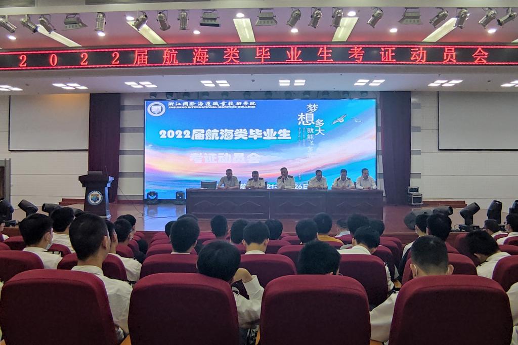 自2021年3月份起,航海工程学院着手谋划提高2022届航海类学生考证通过率,通过召开考证动员大会、考证誓师大会、考前动员会,举办“船长领航计划——对话航海人”等系列活动,鼓舞激励学生认真考证。