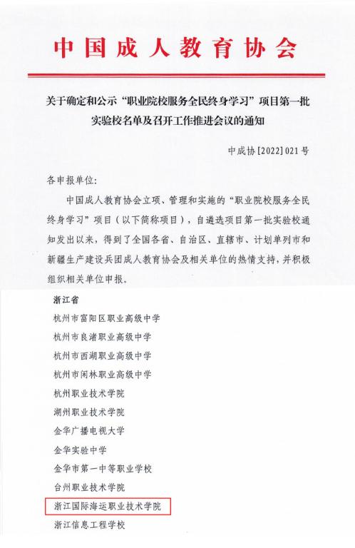 日前,中国成人教育协会公布了“职业院校服务全民终身学习”项目第一批实验校名单,我校成功申报获批第一批实验校。