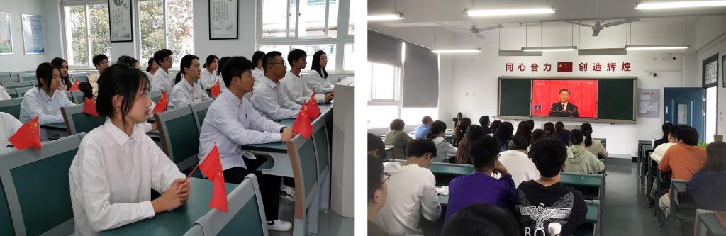 习近平总书记所作的大会报告凝聚人心、催人奋进。在2个小时的大会直播过程中,师生们始终聚精会神,不时在笔记本上写下要点和自己的感悟,精神振奋。