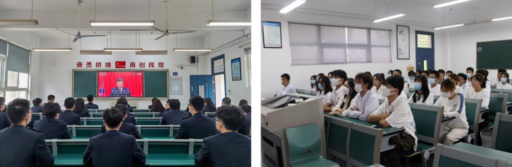 10月16日上午,举世瞩目的中国共产党第二十次全国代表大会在北京隆重召开。当天上午十时整,我校师生满怀激动和欣喜,通过电脑、手机、大屏幕等积极收听收看开幕会实况,认真学习聆听习近平总书记所作的大会报告。全校设行政楼401会议室为直播主会场,以各党总支或直属党支部为单位设分会场,组织师生集中观看。