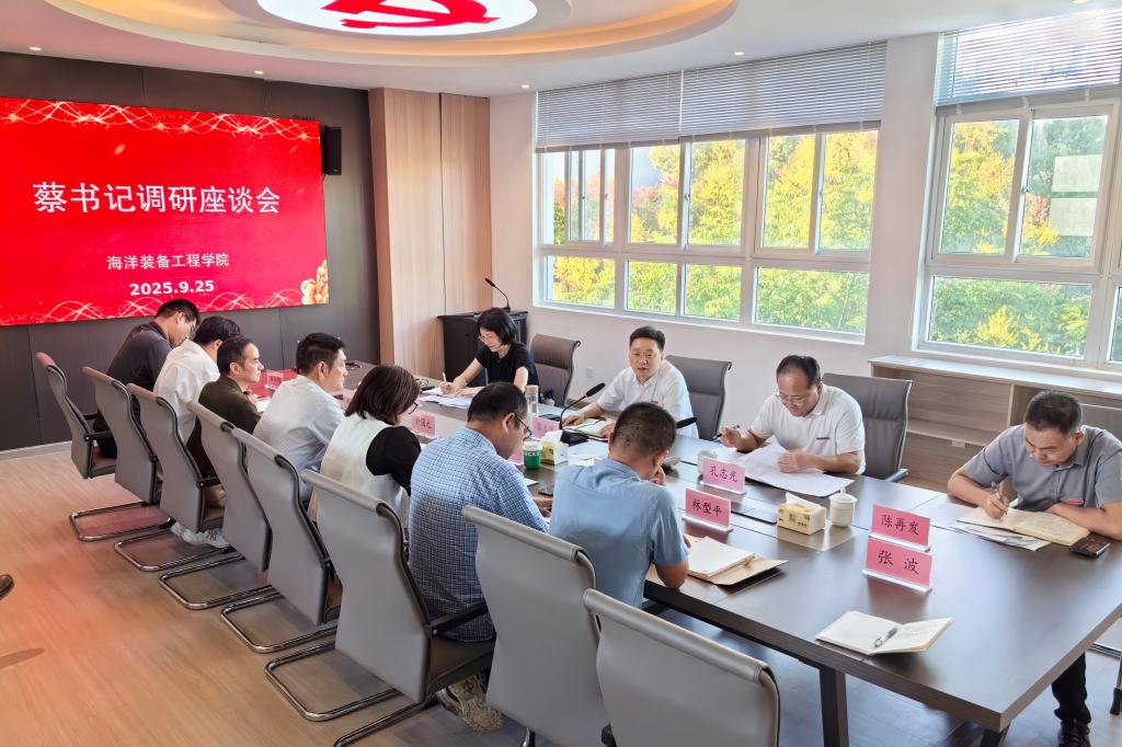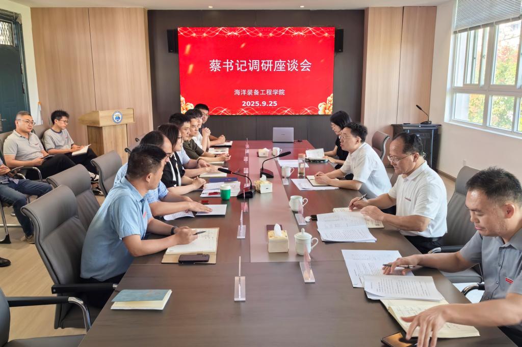 925日,校党委书记蔡志军到海洋装备工程学院走访调研,党委副书记孔志光,教务处、办公室等部门负责人陪同。海洋装备工程学院行政班子、专业团队长(负责人)骨干教师等参加座谈会。