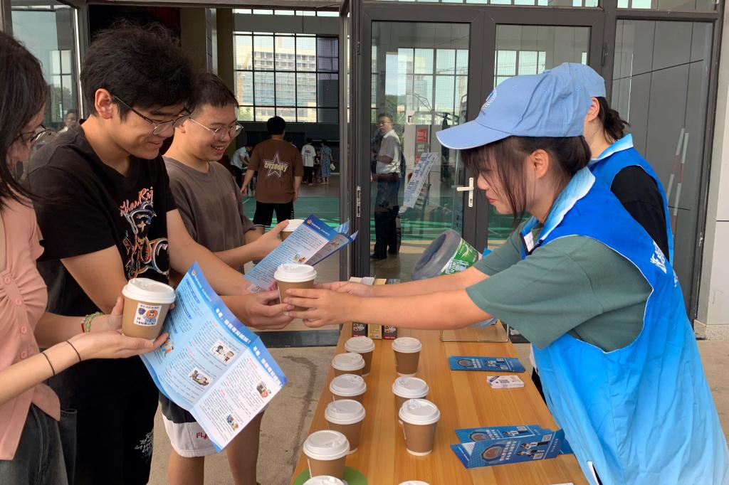 活动现场,除了悬挂横幅、摆放宣传展板、发放宣传材料、讲解反诈安全常识和典型案例外,社团还组织开展了朋友圈“点赞”送“反诈骗”咖啡活动。活动趣味性强,吸引了不少新生和家长踊跃参加。