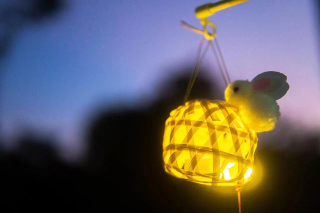 在拿到兔子灯的材料包之后,同学们就迫不及待地开始了制作,他们充分发挥自身的动手能力,绑线、穿洞、放灯、贴字,不一会儿,一盏盏兔子灯就制作完成了。同学们高高兴兴地拎着会发光的兔子灯互相展示。