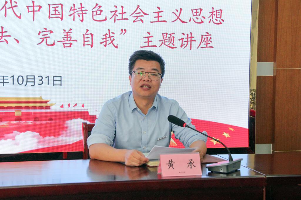 为推动学习贯彻习近平新时代中国特色社会主义思想主题教育走深走实,进一步引导青年干部坚定理想信念、提升党性觉悟、涵养道德操守、严守纪法规矩,1031日,经学校主题教育统一部署,在行政楼401会议室举办了青年干部“明德守法、完善自我”主题讲座,20余名青年干部参加,校党委委员、组织部部长黄承主持讲座。