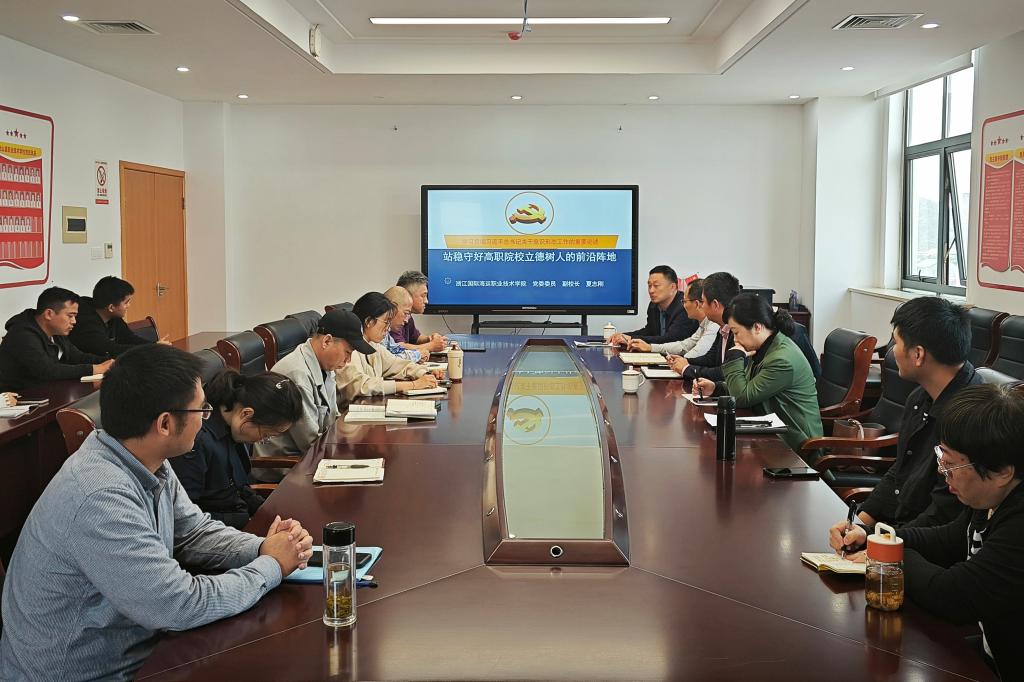 他强调,全体教职工要学习和坚持意识形态工作的理论,提升对意识形态工作的认识,把意识形态工作融入教育管理和服务之中,做到虚功实做、形散神不散,不断增强学生的爱党爱国热情。