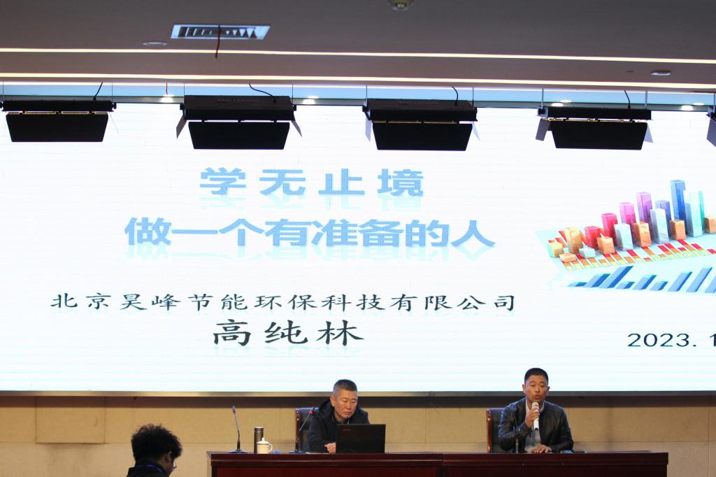 为了让学生更好地了解专业、热爱专业,规划好大学生活,11月15日,石油化工学院邀请北京昊峰节能环保科技有限公司高纯林副总经理为大一学生作《学无止境,做一个有准备的人》主题讲座。石油化工学院部分教师代表和全体大一新生参加,讲座由学院院长杨加力主持。