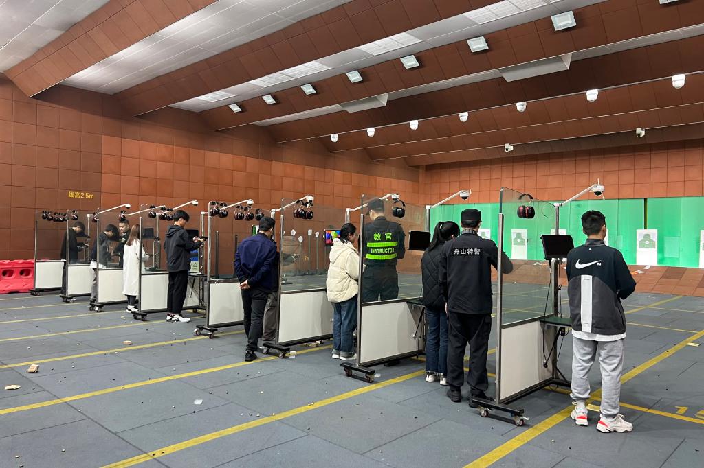 最让同学们感到兴奋的是参观训练靶场并亲身体验警用枪支的使用。验枪、拉动枪栓、持枪瞄准、击发,同学们带着紧张兴奋的心情有样学样,用心体会每个动作细节,有人举枪的手酸软了,有人无法保持稳定性,有人拉不动枪栓,有人因紧张而出现各种错误动作,感慨看似简单帅气的动作,也有很多学问和艰辛付出。