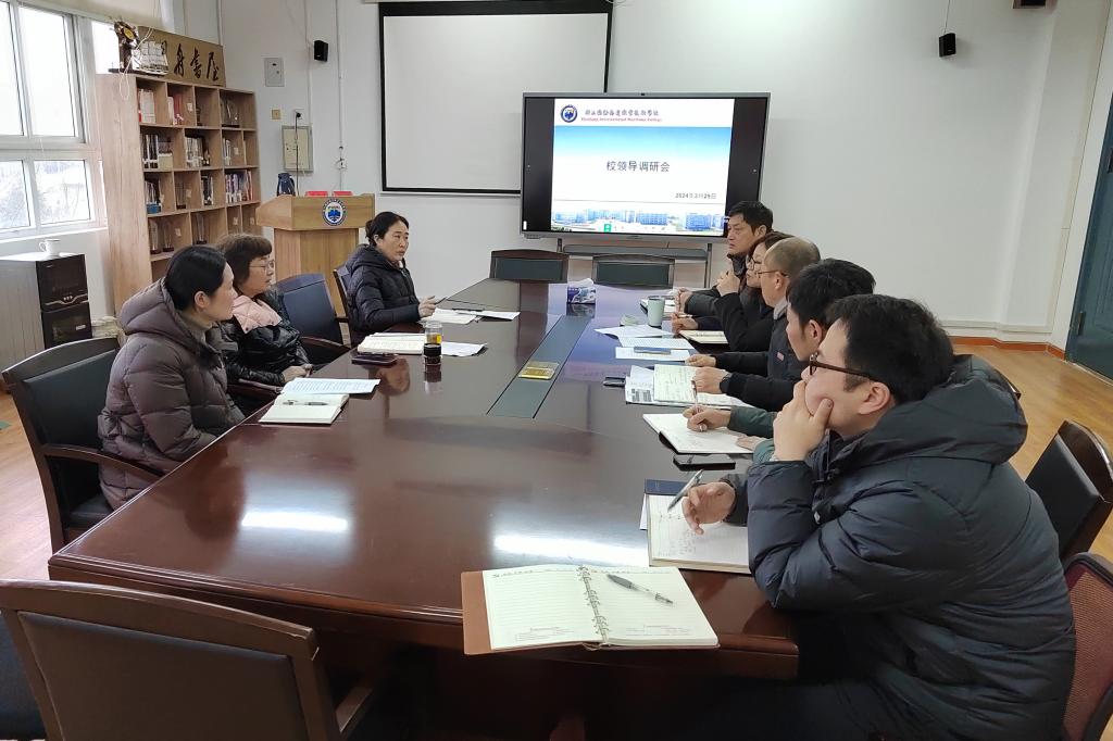 2月29日上午,副校长李丽、教务处负责人到学院调研开学准备情况。学院班子成员就分管工作做了开学工作汇报。李丽副校长对学院开学各项工作给予了肯定,她指出,新的学期要在确保安全稳定的前提下,扎实推进各项工作。特别要以全力以赴的姿态做好两项省级大学生技能竞赛赛项的承办工作,争取在国赛取得突破;要发挥学院的专业特色,在中高职一体化人才培养体制机制改革、省级高水平专业群打造、产教融合基地建设、产业学院和现场工程师等项目申报上多点发力,为加快推进学校各项事业内涵式高质量发展凝心聚力、再创佳绩。
