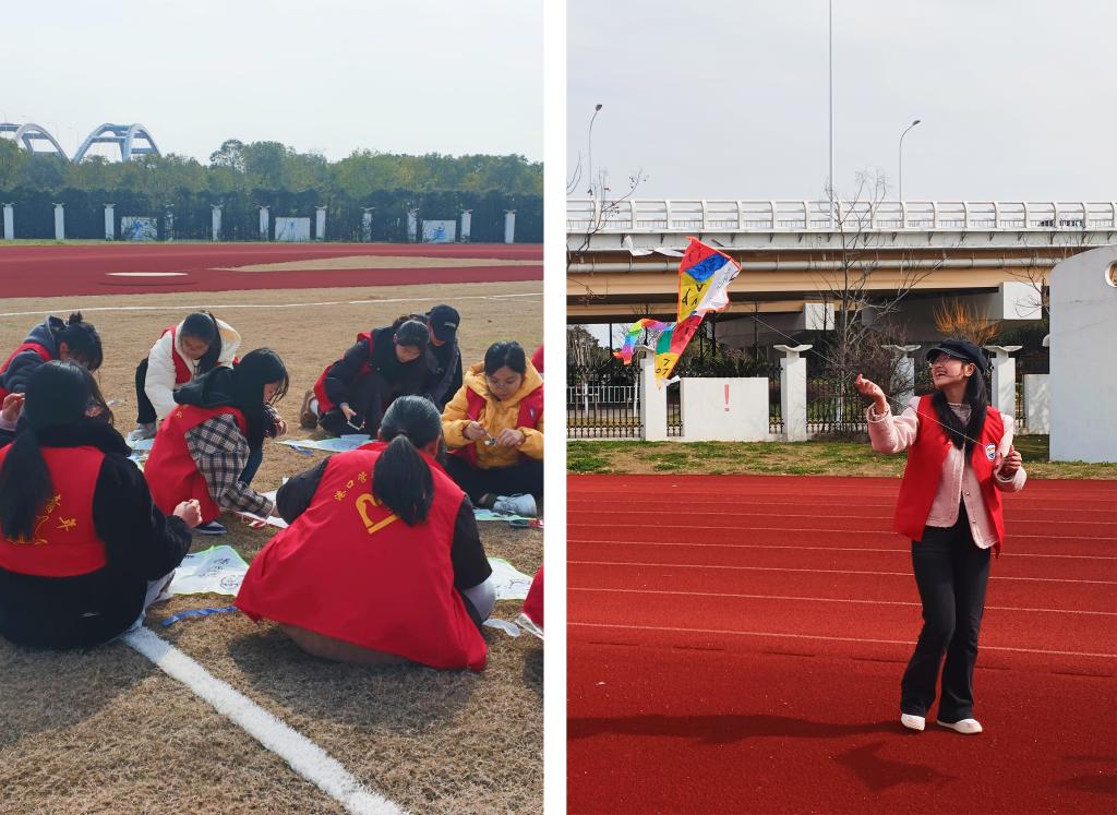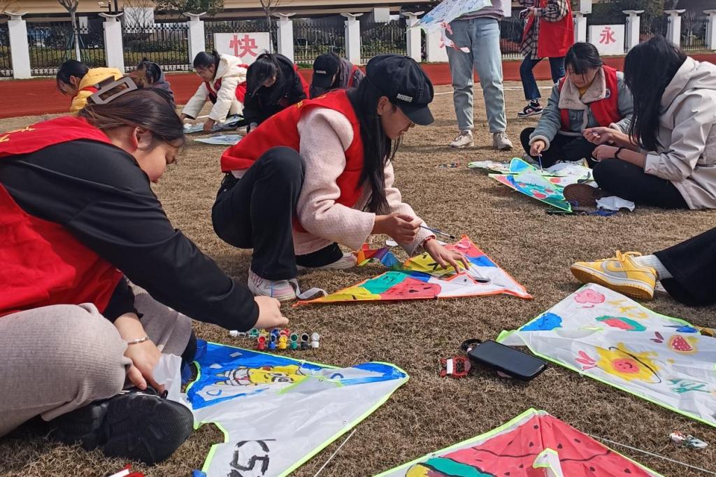 同学们在放飞风筝的同时,也释放了内心的压力和烦恼,尽情享受着DIY带来的乐趣和春天的美好。