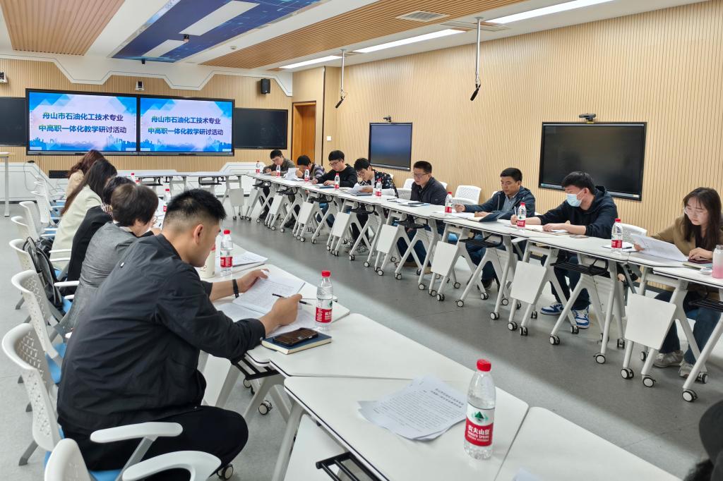 为深化中高职教育衔接,打造具备区域竞争力的石油化工技术操作人才,4月30日,我校石油化工学院与岱山县职业技术学校强强联手,成功举办了中高职一体化教学研讨会,舟山开放大学教育教学研究中心主任郑海湧,以及两校相关骨干教师团队,共计20余人参加。