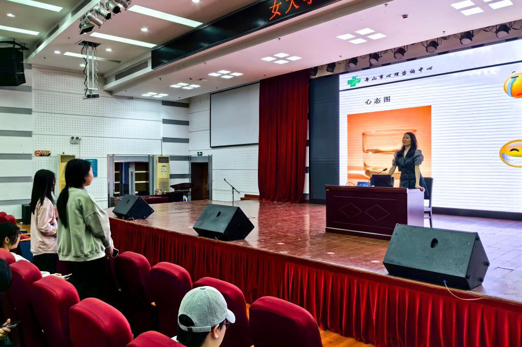 为进一步引导我校女大学生积极关注自身心理健康,增强自我保护与爱的能力,促进健康成长,根据学校“525我爱我”大学生心理健康活动月工作安排,5月22日下午,校党委学工部、校妇联联合举办了一场面向女大学生的心理健康专题讲座。讲座邀请了舟山市心理咨询中心副主任、舟山市心理卫生协会副秘书长金蓉医生担任主讲。校学工部、妇联全体工作人员、全校心理健康教师,以及6个二级学院近400名女大学生代表参加了此次讲座。