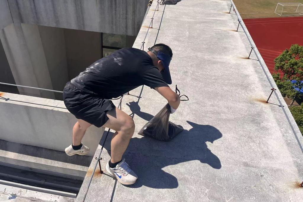 文化体育部检查了电钢琴房、舞蹈房和体育馆门窗关闭情况,对室外篮球场储物柜、田径场跳高垫进行加固,游泳池、跳水池、及体育场馆楼顶进行垃圾清理,并及时做好安全防范措施。(文化体育部)