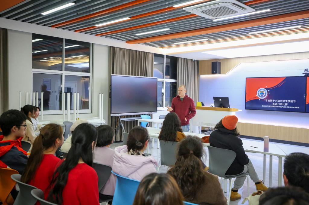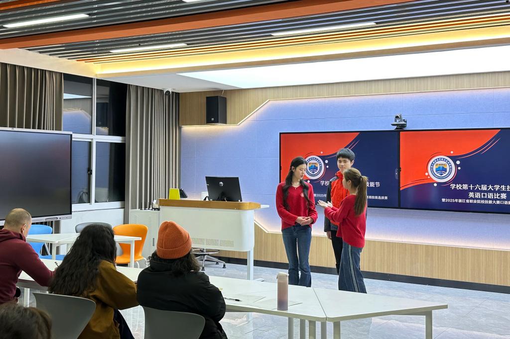 3月8日,校第十六届职业技能大赛英语口语比赛暨2025年浙江省职业院校技能大赛口语赛项校级选拔赛在4122教室举行,共有12支跨学院团队同台竞技。