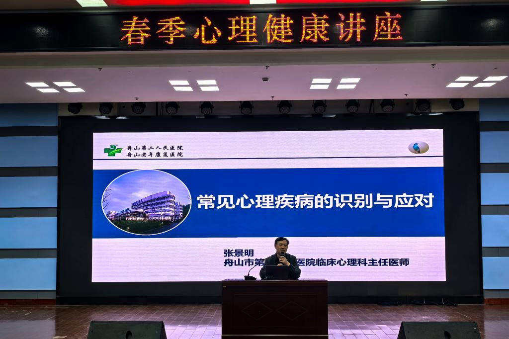 为帮助学生掌握科学的心理调适方法,提升心理素质和抗压能力,根据“让爱来,让碍走——179一起走”学生心理健康教育品牌——春季心理护航系列活动的安排,3月26日下午,学校心理健康教育中心邀请舟山第二医院精神科主任医师张景明为我校学生带来了一场《春季常见心理疾病的识别与应对》的心理健康知识讲座。全体在校班级心理委员、2024级寝室长参加了此次讲座。