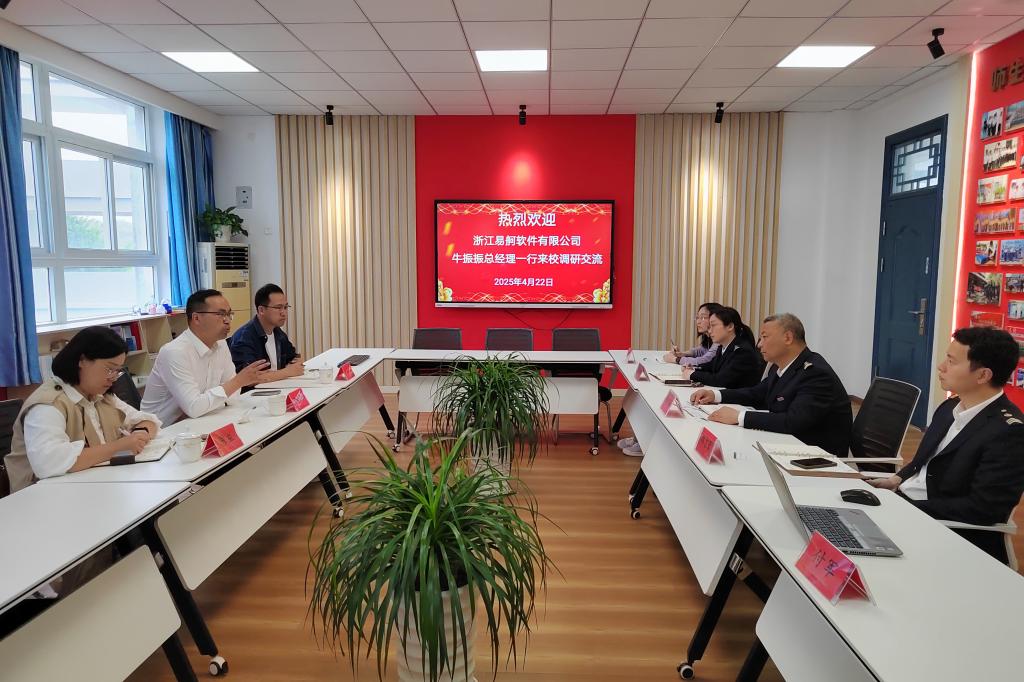 会上,汪益兵院长首先代表学院对浙江易舸的来访表示热烈欢迎,并介绍了学院专业设置、人才培养、教师队伍等基本情况。牛振振总经理对学院的热情接待表达了感谢,简要介绍了公司的发展历程、业务范围及今后的发展方向等情况。