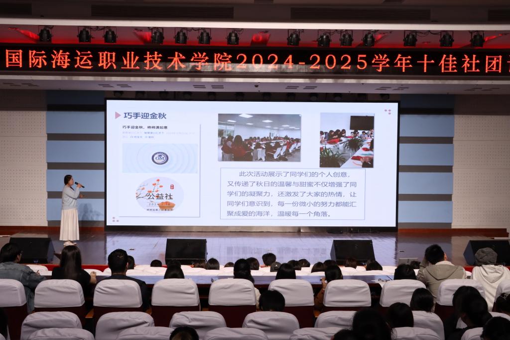 根据评审结果,海韵阳光排球社、弦心社、筑梦航海新媒体中心、绿洲环保协会、国粹社、礼仪社、街舞社、美食社、英语沙龙社、岱山校区“平安守护联盟”等十个社团荣获我校2024-2025学年“十佳社团”荣誉称号。
