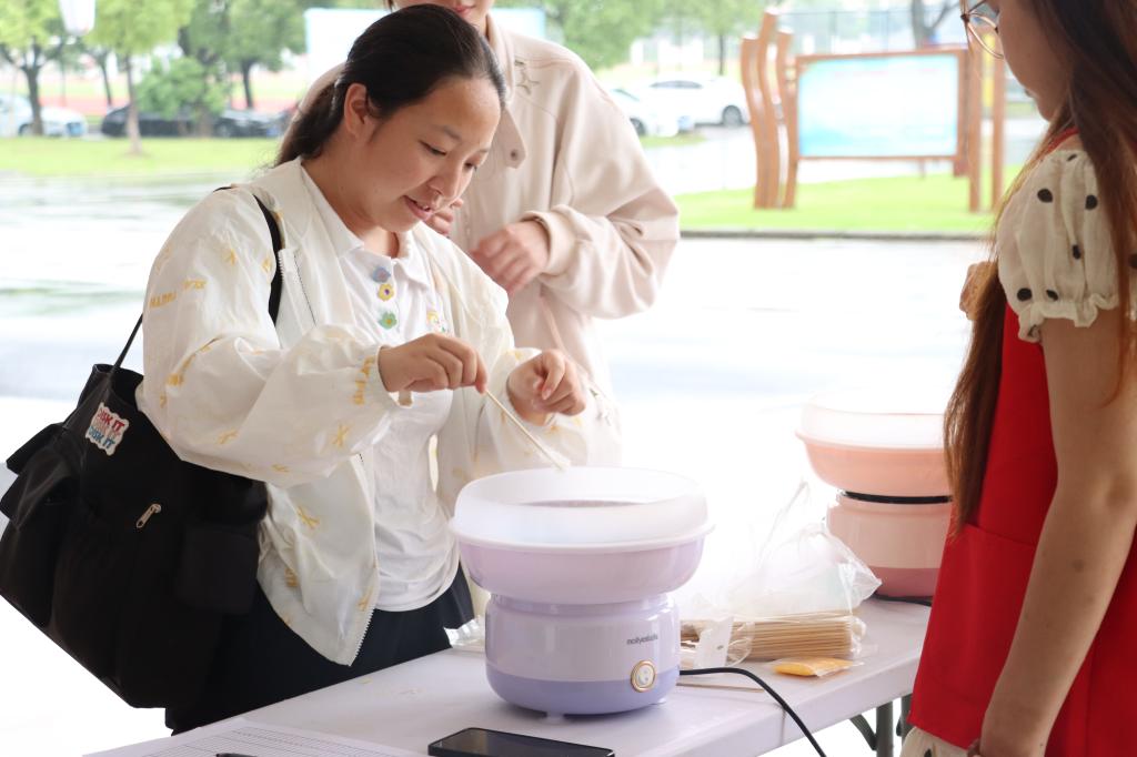 活动将公益内核与趣味体验巧妙融合,在飞盘九宫格知识问答区,同学们化身“运动健将”,在投掷飞盘的跃动中积极应答健康知识;投壶环节里,大家屏气凝神,以专注姿态完成“爱心投递”;棉花糖制作体验区的甜蜜气息,让献血前的紧张情绪在绵密糖丝中悄然舒缓。