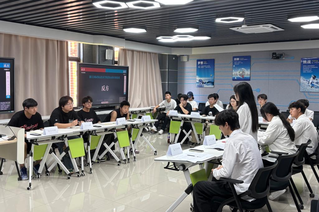 比赛现场气氛热烈,辩手们挥洒才情,带来了一场精彩绝伦的思辨盛宴。本次辩论赛以学风建设为主线,精心设置了一系列相关辩题。在决赛中,正反双方聚焦“AI工具导致大学生更高效、更个性化还是导致大学生能力弱化、思维惰性增强”这一极具时代性与现实意义的辩题,展开了激烈交锋。正方辩手凭借坚定的立场、详实的论据,全方位阐述了AI工具为大学生带来的诸多益处;反方辩手则以敏锐的洞察力和犀利的言辞,深入剖析了AI工具可能引发的弊端。自由辩论环节更是将比赛推向高潮,双方辩手你来我往,唇枪舌剑,妙语连珠,现场气氛紧张而热烈。