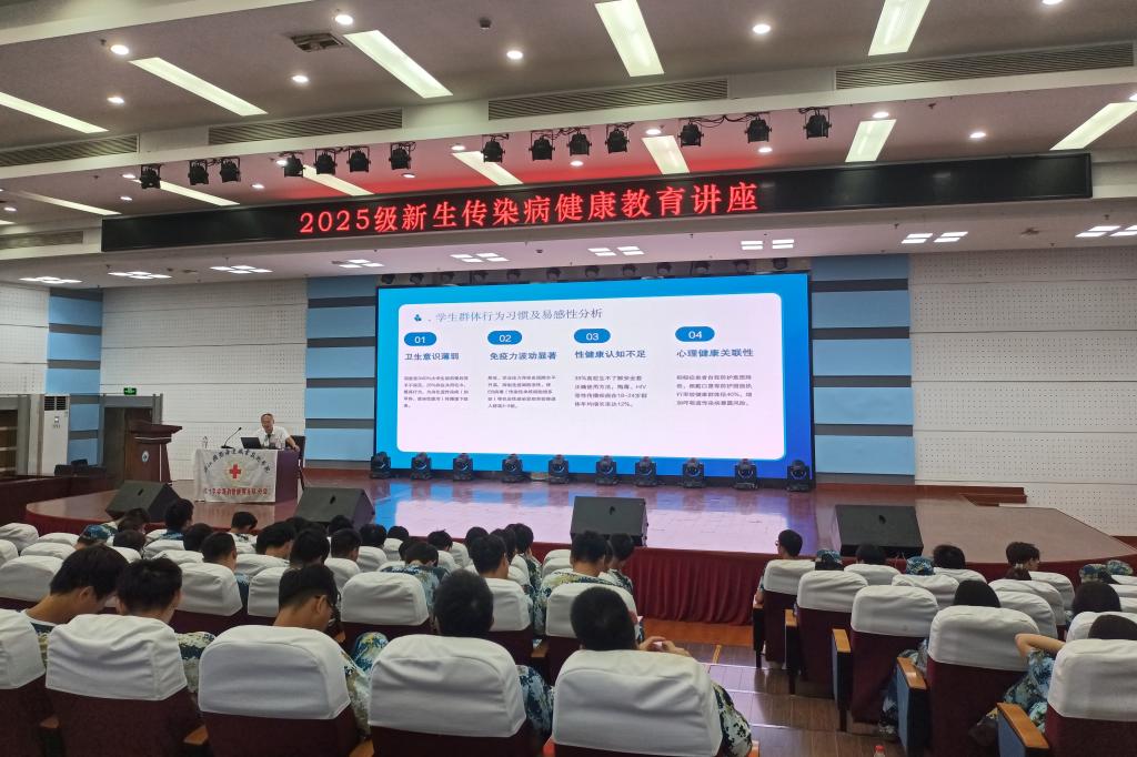 为增强2025级新生的传染病防控意识,保障身心健康,维护校园安全稳定,9月21日上午,我校特邀舟山市疾病预防控制中心艾结科吴铭宇科长在图书馆四楼报告厅举办了“科学防控 全员参与 筑牢高校健康防线”传染病防控知识专题讲座。四百余名新生代表到场聆听,现场气氛热烈,掌声阵阵,共发放宣传册400余份。
