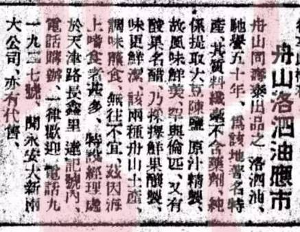 1937年1月6日的《申报》有一则题为《舟山洛泗油应市》的文章,云: