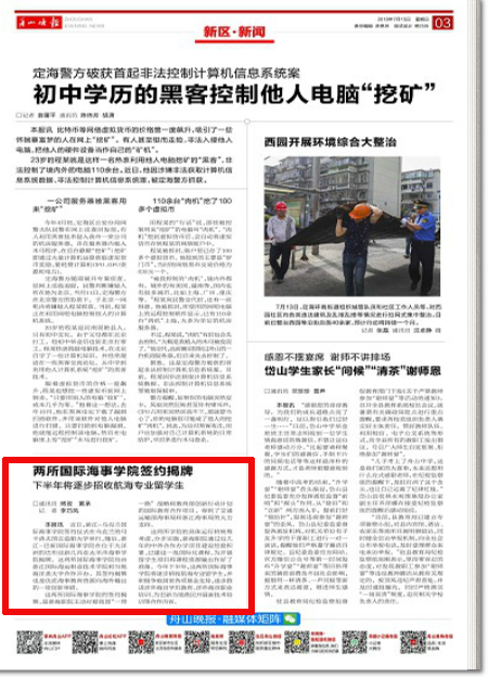 这两所国际海事字院的签约揭牌,是浙海职院主动对接我国“一带一路”战略和教育部创新行动计划的国际教育合作项目,得到了交通运输部每事局和浙江海事局的大力支持。