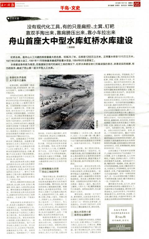 《舟山晚报》:舟山首座大中型水库虹桥水库建设