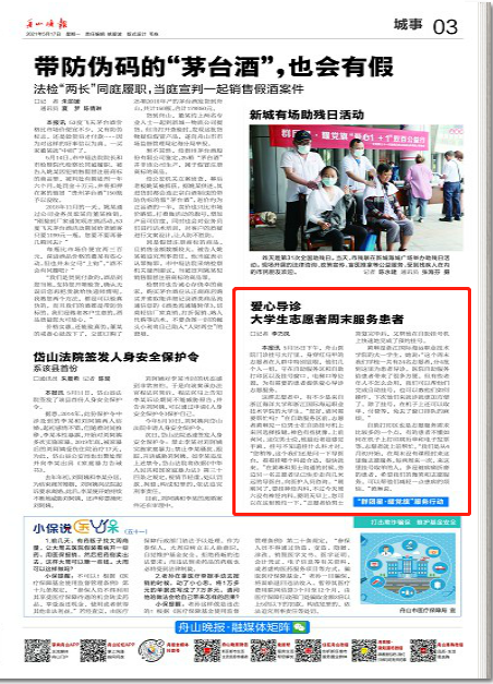 《舟山晚报》:“群团星·耀党旗”服务行动丨爱心导诊 大学生志愿者周末服务患者