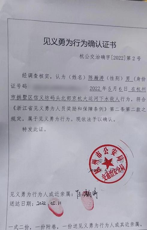 11,根据《浙江省见义勇为人员奖励和保障条例》,其行为被确认为见义勇为。