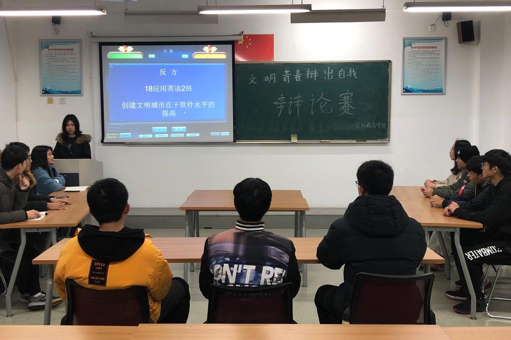 为了响应舟山创建全国文明城市的号召,丰富学生的课余生活,国际教育学院组织2018级新生开展“文明青春,辩出自我”主题辩论赛。经过四场唇枪舌剑的争夺,最终2018级工业机器人技术(中乌合作)1班、2018级船舶工程技术(中乌合作)1班和2018级应用英语1班分获辩论赛一、二、三等奖。