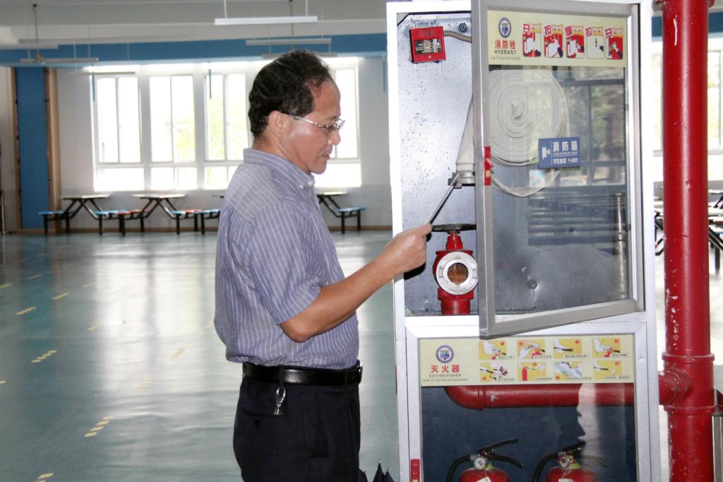 检查组一行先后来到学校北门岗、教学楼、图书馆、国际交流中心、学生食堂、商贸区、学生宿舍、社会培训大楼等区域,重点检查了消防设施、环境卫生、公益广告、垃圾分类等校园安全及文明创建工作开展情况,并对检查中发现的问题提出了整改意见。