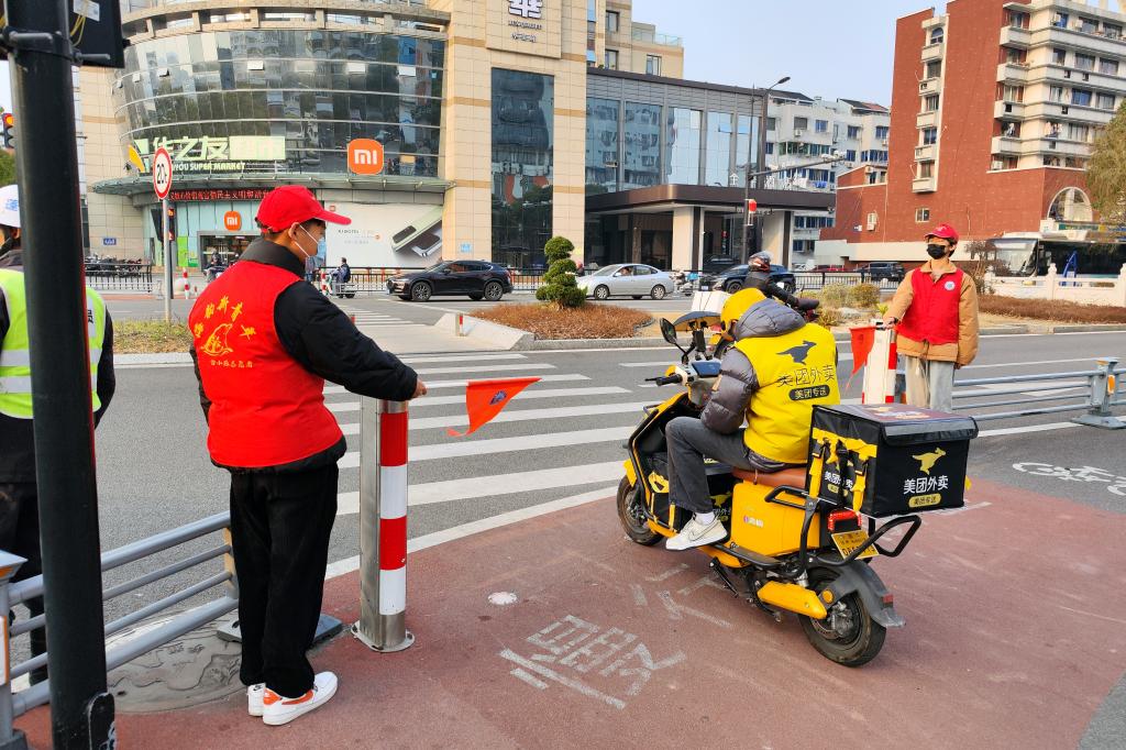 随后,交警组织培训学员们前往现场进行实操。在文明劝导志愿服务中,每个路口的志愿者恪守职责,积极配合交警引导市民维护交通秩序、文明出行,营造畅通、安全、有序的道路交通环境;其余志愿者负责整治交通路口周边二轮车、共享单车等停放秩序。
