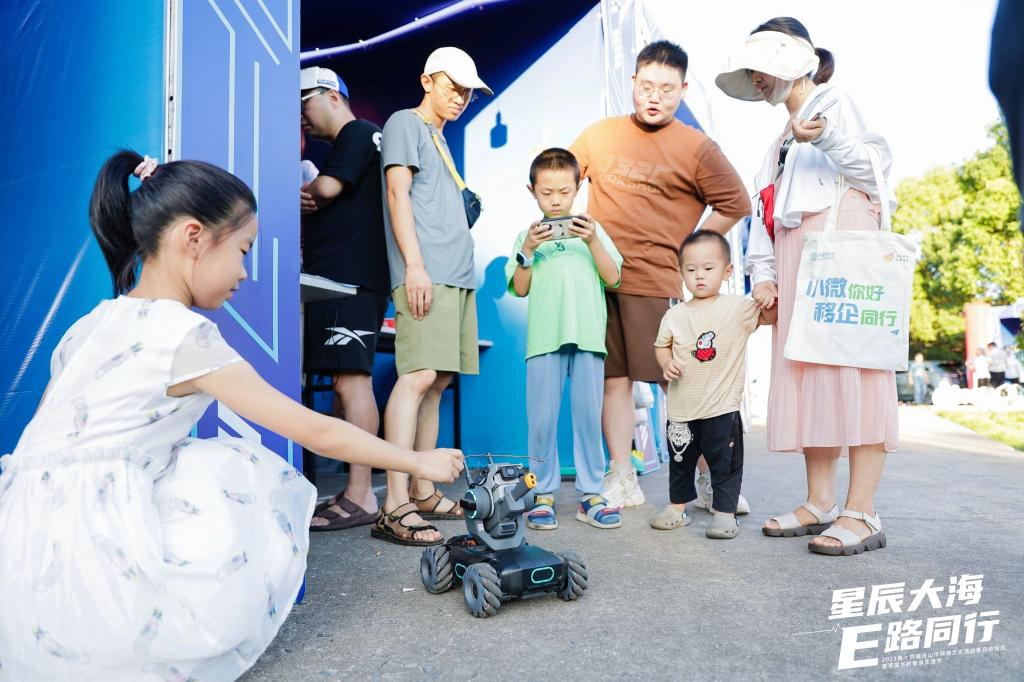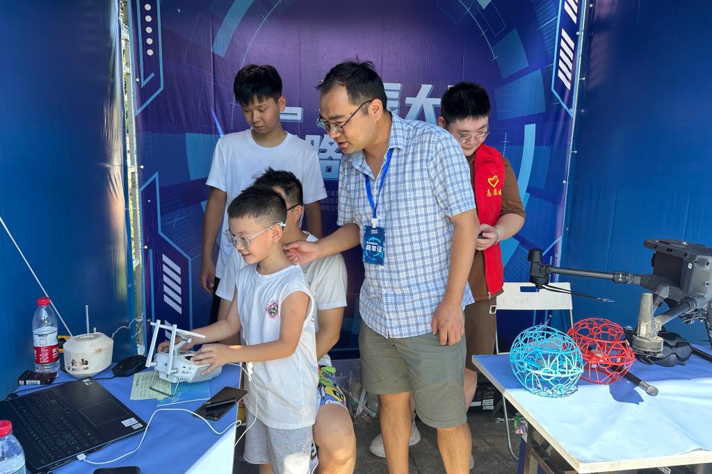 无人机社团的志愿者们在“互联网之光”市集里,指导游客们体验智能无人机、机器人等高科技产品,让更多人领略了未来乡村的智享魅力,为展茅乡村振兴注入新的活力,助力互联网潮农共富。(海洋装备工程学院)