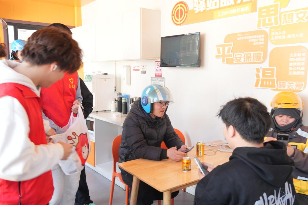 聚焦新业态劳动者群体,“驿站暖阳行动”成为三月最动人的风景线。“同舟”基金志愿者化身城市温度传递者,在宝龙广场劳动者驿站开展暖心服务。为奔波的外卖骑手递上矿泉水、能量饮料,还针对即将到来的高温天气,专门教授中暑应急处理知识,全方位守护骑手健康。除此之外,志愿者们亲手写下了满含温情的卡片,上面写着“风雨无阻,感谢有您”。一位快递员双手捧着卡片感慨道:“这杯热茶暖的是身,卡片上的话暖的是心。”这份温暖,不仅是一时的关怀,更是城市对新业态劳动者们深深的敬意与认可。