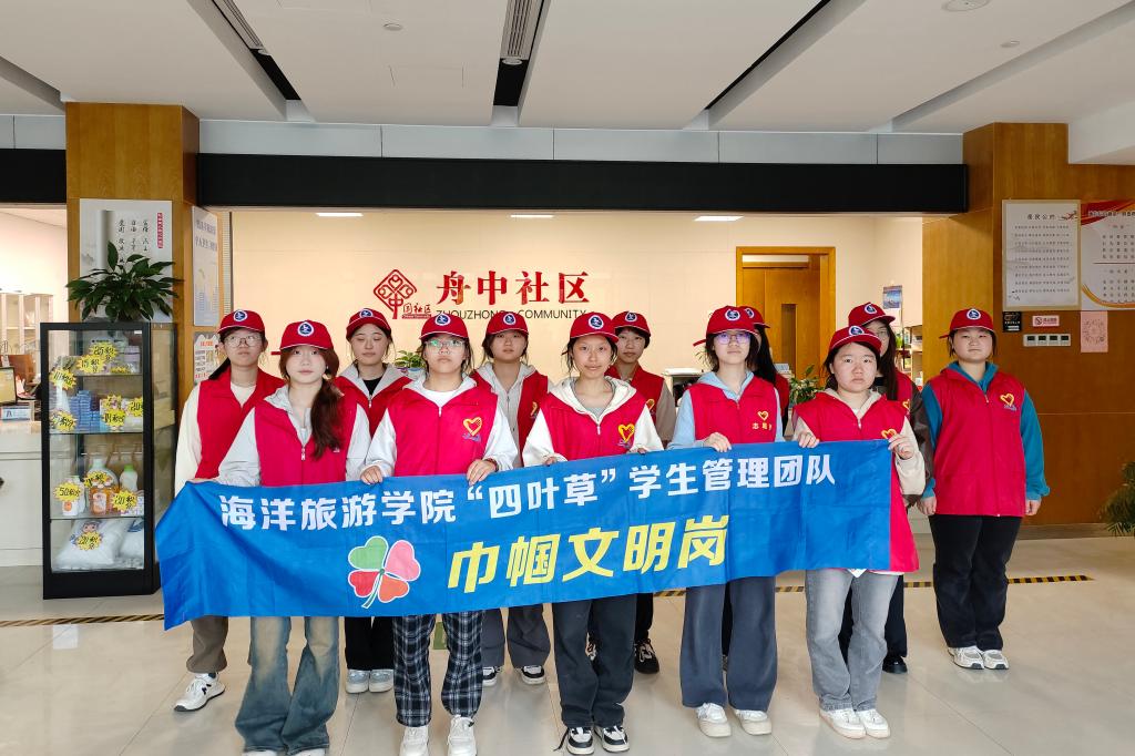 4月20日,海洋旅游学院学生志愿者服务团队走进舟中社区,开展反诈知识宣传与社区环境美化志愿服务活动,以青春力量践行社会责任,助力构建平安和谐的社区环境。