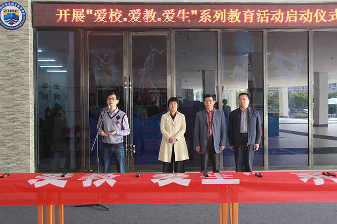 启动仪式上,校党委委员、工会主席刘相发表了热情洋溢的讲话,对本次活动的意义做了高度评价。教师代表——港口管理学院何伟老师向在场师生做庄严承诺,校党委委员、组织部部长江爱芬宣读了《“爱校 爱教 爱生”倡议书》。在校党委副书记胡国光宣布活动正式启动后,在场的师生纷纷在横幅上签名响应“三热爱”活动号召。